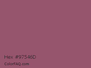 Hex #97546d Color is a normal rose color and the nearest color is Sugar Plum #914e75. Hex code #97546d and RGB value is rgb(151,84,109). In RGB color space, this color is composed of 59% red, 33% green, 43% blue, In CMYK color space, this color is composed of 0% cyan, 44% magenta, 28% yellow , 41% black , In HSL color space, this color has a hue angle of 338° , 29% saturation and 46% lightness.