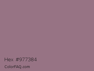 Hex #977384 Color is a normal rose color and the nearest color is Bazaar #98777b. Hex code #977384 and RGB value is rgb(151,115,132). In RGB color space, this color is composed of 59% red, 45% green, 52% blue, In CMYK color space, this color is composed of 0% cyan, 24% magenta, 13% yellow , 41% black , In HSL color space, this color has a hue angle of 332° , 15% saturation and 52% lightness.