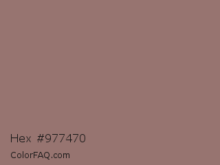 Hex #977470 Color is a normal red color and the nearest color is Hemp #907874. Hex code #977470 and RGB value is rgb(151,116,112). In RGB color space, this color is composed of 59% red, 45% green, 44% blue, In CMYK color space, this color is composed of 0% cyan, 23% magenta, 26% yellow , 41% black , In HSL color space, this color has a hue angle of 6° , 16% saturation and 52% lightness.