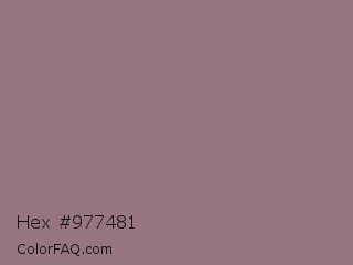 Hex #977481 Color is a normal rose color and the nearest color is Bazaar #98777b. Hex code #977481 and RGB value is rgb(151,116,129). In RGB color space, this color is composed of 59% red, 45% green, 51% blue, In CMYK color space, this color is composed of 0% cyan, 23% magenta, 15% yellow , 41% black , In HSL color space, this color has a hue angle of 338° , 14% saturation and 52% lightness.
