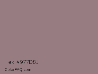 Hex #977d81 Color is a normal red color and the nearest color is Cinereous #98817b. Hex code #977d81 and RGB value is rgb(151,125,129). In RGB color space, this color is composed of 59% red, 49% green, 51% blue, In CMYK color space, this color is composed of 0% cyan, 17% magenta, 15% yellow , 41% black , In HSL color space, this color has a hue angle of 351° , 11% saturation and 54% lightness.