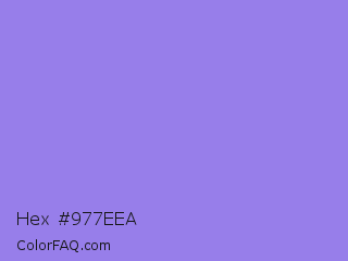 Hex #977eea Color is a light indigo color and the nearest color is Medium Purple #9370db. Hex code #977eea and RGB value is rgb(151,126,234). In RGB color space, this color is composed of 59% red, 49% green, 92% blue, In CMYK color space, this color is composed of 35% cyan, 46% magenta, 0% yellow , 8% black , In HSL color space, this color has a hue angle of 254° , 72% saturation and 71% lightness.