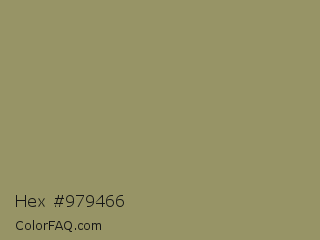 Hex #979466 Color is a normal yellow color and the nearest color is Avocado Pulp #888d65. Hex code #979466 and RGB value is rgb(151,148,102). In RGB color space, this color is composed of 59% red, 58% green, 40% blue, In CMYK color space, this color is composed of 0% cyan, 2% magenta, 32% yellow , 41% black , In HSL color space, this color has a hue angle of 56° , 19% saturation and 50% lightness.