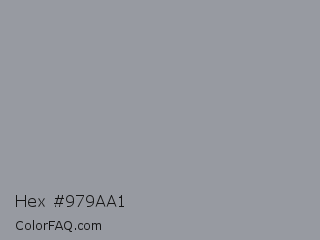 Hex #979aa1 Color is a light blue color and the nearest color is Manatee #979aaa. Hex code #979aa1 and RGB value is rgb(151,154,161). In RGB color space, this color is composed of 59% red, 60% green, 63% blue, In CMYK color space, this color is composed of 6% cyan, 4% magenta, 0% yellow , 37% black , In HSL color space, this color has a hue angle of 222° , 5% saturation and 61% lightness.