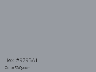 Hex #979ba1 Color is a light blue color and the nearest color is Manatee #979aaa. Hex code #979ba1 and RGB value is rgb(151,155,161). In RGB color space, this color is composed of 59% red, 61% green, 63% blue, In CMYK color space, this color is composed of 6% cyan, 4% magenta, 0% yellow , 37% black , In HSL color space, this color has a hue angle of 216° , 5% saturation and 61% lightness.