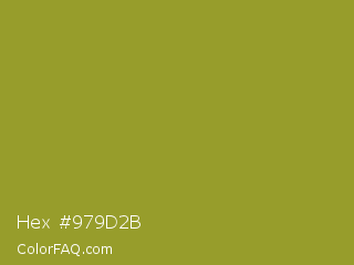 Hex #979d2b Color is a normal yellow color and the nearest color is Citron #9fa91f. Hex code #979d2b and RGB value is rgb(151,157,43). In RGB color space, this color is composed of 59% red, 62% green, 17% blue, In CMYK color space, this color is composed of 4% cyan, 0% magenta, 73% yellow , 38% black , In HSL color space, this color has a hue angle of 63° , 57% saturation and 39% lightness.