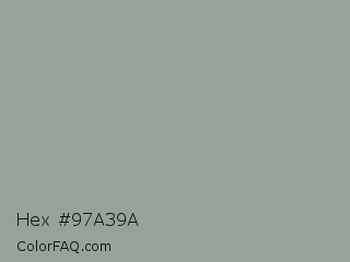 Hex #97a39a Color is a light green color and the nearest color is Pewter #96a8a1. Hex code #97a39a and RGB value is rgb(151,163,154). In RGB color space, this color is composed of 59% red, 64% green, 60% blue, In CMYK color space, this color is composed of 7% cyan, 0% magenta, 6% yellow , 36% black , In HSL color space, this color has a hue angle of 135° , 6% saturation and 62% lightness.
