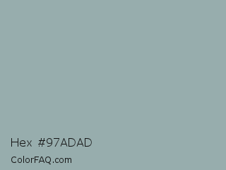 Hex #97adad Color is a light cyan color and the nearest color is Edward #a2aeab. Hex code #97adad and RGB value is rgb(151,173,173). In RGB color space, this color is composed of 59% red, 68% green, 68% blue, In CMYK color space, this color is composed of 13% cyan, 0% magenta, 0% yellow , 32% black , In HSL color space, this color has a hue angle of 180° , 12% saturation and 64% lightness.