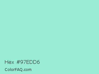 Hex #97edd6 Color is a light cyan color and the nearest color is Water Leaf #a1e9de. Hex code #97edd6 and RGB value is rgb(151,237,214). In RGB color space, this color is composed of 59% red, 93% green, 84% blue, In CMYK color space, this color is composed of 36% cyan, 0% magenta, 10% yellow , 7% black , In HSL color space, this color has a hue angle of 164° , 70% saturation and 76% lightness.