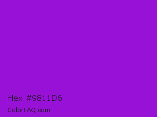 Hex #9811d6 Color is a normal purple color and the nearest color is Dark Violet #9400d3. Hex code #9811d6 and RGB value is rgb(152,17,214). In RGB color space, this color is composed of 60% red, 7% green, 84% blue, In CMYK color space, this color is composed of 29% cyan, 92% magenta, 0% yellow , 16% black , In HSL color space, this color has a hue angle of 281° , 85% saturation and 45% lightness.