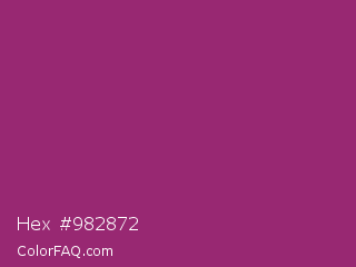 Hex #982872 Color is a normal magenta color and the nearest color is Amaranth Deep Purple #9f2b68. Hex code #982872 and RGB value is rgb(152,40,114). In RGB color space, this color is composed of 60% red, 16% green, 45% blue, In CMYK color space, this color is composed of 0% cyan, 74% magenta, 25% yellow , 40% black , In HSL color space, this color has a hue angle of 320° , 58% saturation and 38% lightness.
