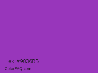 Hex #9836bb Color is a normal purple color and the nearest color is Dark Orchid #9932cc. Hex code #9836bb and RGB value is rgb(152,54,187). In RGB color space, this color is composed of 60% red, 21% green, 73% blue, In CMYK color space, this color is composed of 19% cyan, 71% magenta, 0% yellow , 27% black , In HSL color space, this color has a hue angle of 284° , 55% saturation and 47% lightness.