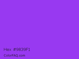 Hex #9839f1 Color is a normal purple color and the nearest color is Blue Violet #8a2be2. Hex code #9839f1 and RGB value is rgb(152,57,241). In RGB color space, this color is composed of 60% red, 22% green, 95% blue, In CMYK color space, this color is composed of 37% cyan, 76% magenta, 0% yellow , 5% black , In HSL color space, this color has a hue angle of 271° , 87% saturation and 58% lightness.