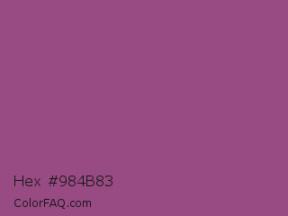 Hex #984b83 Color is a normal magenta color and the nearest color is Razzmic Berry #8d4e85. Hex code #984b83 and RGB value is rgb(152,75,131). In RGB color space, this color is composed of 60% red, 29% green, 51% blue, In CMYK color space, this color is composed of 0% cyan, 51% magenta, 14% yellow , 40% black , In HSL color space, this color has a hue angle of 316° , 34% saturation and 45% lightness.