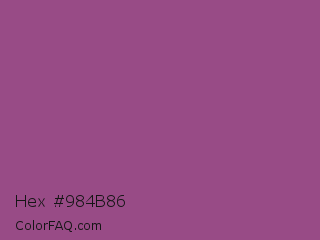 Hex #984b86 Color is a normal magenta color and the nearest color is Razzmic Berry #8d4e85. Hex code #984b86 and RGB value is rgb(152,75,134). In RGB color space, this color is composed of 60% red, 29% green, 53% blue, In CMYK color space, this color is composed of 0% cyan, 51% magenta, 12% yellow , 40% black , In HSL color space, this color has a hue angle of 314° , 34% saturation and 45% lightness.