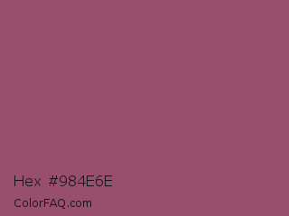 Hex #984e6e Color is a normal rose color and the nearest color is Sugar Plum #914e75. Hex code #984e6e and RGB value is rgb(152,78,110). In RGB color space, this color is composed of 60% red, 31% green, 43% blue, In CMYK color space, this color is composed of 0% cyan, 49% magenta, 28% yellow , 40% black , In HSL color space, this color has a hue angle of 334° , 32% saturation and 45% lightness.