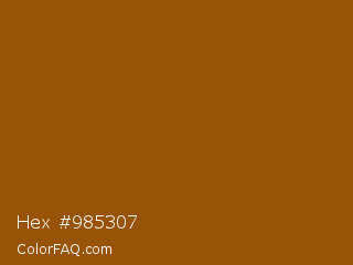 Hex #985307 Color is a normal orange color and the nearest color is Chelsea Gem #9e5302. Hex code #985307 and RGB value is rgb(152,83,7). In RGB color space, this color is composed of 60% red, 33% green, 3% blue, In CMYK color space, this color is composed of 0% cyan, 45% magenta, 95% yellow , 40% black , In HSL color space, this color has a hue angle of 31° , 91% saturation and 31% lightness.