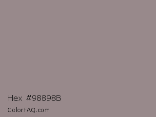Hex #98898b Color is a normal red color and the nearest color is Venus #928590. Hex code #98898b and RGB value is rgb(152,137,139). In RGB color space, this color is composed of 60% red, 54% green, 55% blue, In CMYK color space, this color is composed of 0% cyan, 10% magenta, 9% yellow , 40% black , In HSL color space, this color has a hue angle of 352° , 7% saturation and 57% lightness.