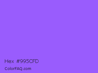 Hex #995cfd Color is a light violet color and the nearest color is Navy Purple #9457eb. Hex code #995cfd and RGB value is rgb(153,92,253). In RGB color space, this color is composed of 60% red, 36% green, 99% blue, In CMYK color space, this color is composed of 40% cyan, 64% magenta, 0% yellow , 1% black , In HSL color space, this color has a hue angle of 263° , 98% saturation and 68% lightness.