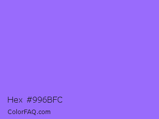 Hex #996bfc Color is a light indigo color and the nearest color is Navy Purple #9457eb. Hex code #996bfc and RGB value is rgb(153,107,252). In RGB color space, this color is composed of 60% red, 42% green, 99% blue, In CMYK color space, this color is composed of 39% cyan, 58% magenta, 0% yellow , 1% black , In HSL color space, this color has a hue angle of 259° , 96% saturation and 70% lightness.