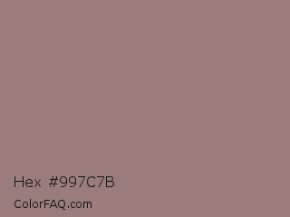 Hex #997c7b Color is a normal red color and the nearest color is Cinereous #98817b. Hex code #997c7b and RGB value is rgb(153,124,123). In RGB color space, this color is composed of 60% red, 49% green, 48% blue, In CMYK color space, this color is composed of 0% cyan, 19% magenta, 20% yellow , 40% black , In HSL color space, this color has a hue angle of 2° , 13% saturation and 54% lightness.
