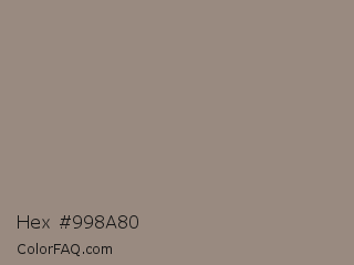 Hex #998a80 Color is a normal orange color and the nearest color is Pale Oyster #988d77. Hex code #998a80 and RGB value is rgb(153,138,128). In RGB color space, this color is composed of 60% red, 54% green, 50% blue, In CMYK color space, this color is composed of 0% cyan, 10% magenta, 16% yellow , 40% black , In HSL color space, this color has a hue angle of 24° , 11% saturation and 55% lightness.