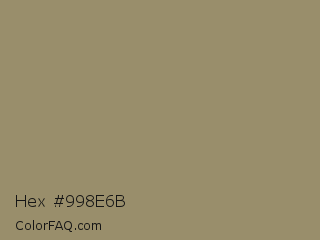Hex #998e6b Color is a normal yellow color and the nearest color is Arrowtown #948771. Hex code #998e6b and RGB value is rgb(153,142,107). In RGB color space, this color is composed of 60% red, 56% green, 42% blue, In CMYK color space, this color is composed of 0% cyan, 7% magenta, 30% yellow , 40% black , In HSL color space, this color has a hue angle of 46° , 18% saturation and 51% lightness.