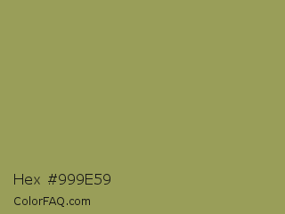 Hex #999e59 Color is a normal yellow color and the nearest color is Moss Green #8a9a5b. Hex code #999e59 and RGB value is rgb(153,158,89). In RGB color space, this color is composed of 60% red, 62% green, 35% blue, In CMYK color space, this color is composed of 3% cyan, 0% magenta, 44% yellow , 38% black , In HSL color space, this color has a hue angle of 64° , 28% saturation and 48% lightness.