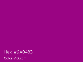Hex #9a0483 Color is a normal magenta color and the nearest color is Dark Magenta #8b008b. Hex code #9a0483 and RGB value is rgb(154,4,131). In RGB color space, this color is composed of 60% red, 2% green, 51% blue, In CMYK color space, this color is composed of 0% cyan, 97% magenta, 15% yellow , 40% black , In HSL color space, this color has a hue angle of 309° , 95% saturation and 31% lightness.