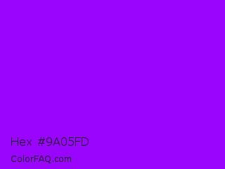 Hex #9a05fd Color is a normal purple color and the nearest color is Vivid Violet #9f00ff. Hex code #9a05fd and RGB value is rgb(154,5,253). In RGB color space, this color is composed of 60% red, 2% green, 99% blue, In CMYK color space, this color is composed of 39% cyan, 98% magenta, 0% yellow , 1% black , In HSL color space, this color has a hue angle of 276° , 98% saturation and 51% lightness.