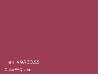 Hex #9a3d55 Color is a normal red color and the nearest color is Vin Rouge #983d61. Hex code #9a3d55 and RGB value is rgb(154,61,85). In RGB color space, this color is composed of 60% red, 24% green, 33% blue, In CMYK color space, this color is composed of 0% cyan, 60% magenta, 45% yellow , 40% black , In HSL color space, this color has a hue angle of 345° , 43% saturation and 42% lightness.