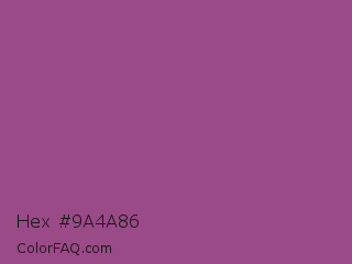 Hex #9a4a86 Color is a normal magenta color and the nearest color is Plum #8e4585. Hex code #9a4a86 and RGB value is rgb(154,74,134). In RGB color space, this color is composed of 60% red, 29% green, 53% blue, In CMYK color space, this color is composed of 0% cyan, 52% magenta, 13% yellow , 40% black , In HSL color space, this color has a hue angle of 315° , 35% saturation and 45% lightness.