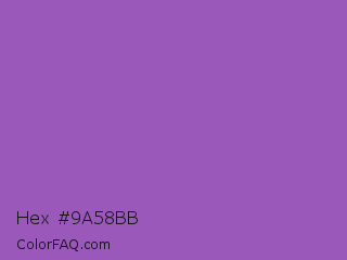 Hex #9a58bb Color is a normal purple color and the nearest color is Deep Lilac #9955bb. Hex code #9a58bb and RGB value is rgb(154,88,187). In RGB color space, this color is composed of 60% red, 35% green, 73% blue, In CMYK color space, this color is composed of 18% cyan, 53% magenta, 0% yellow , 27% black , In HSL color space, this color has a hue angle of 280° , 42% saturation and 54% lightness.
