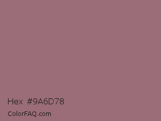 Hex #9a6d78 Color is a normal red color and the nearest color is Bazaar #98777b. Hex code #9a6d78 and RGB value is rgb(154,109,120). In RGB color space, this color is composed of 60% red, 43% green, 47% blue, In CMYK color space, this color is composed of 0% cyan, 29% magenta, 22% yellow , 40% black , In HSL color space, this color has a hue angle of 345° , 18% saturation and 52% lightness.