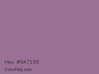 Hex #9a7195 Color is a normal magenta color and the nearest color is Mountbatten Pink #997a8d. Hex code #9a7195 and RGB value is rgb(154,113,149). In RGB color space, this color is composed of 60% red, 44% green, 58% blue, In CMYK color space, this color is composed of 0% cyan, 27% magenta, 3% yellow , 40% black , In HSL color space, this color has a hue angle of 307° , 17% saturation and 52% lightness.