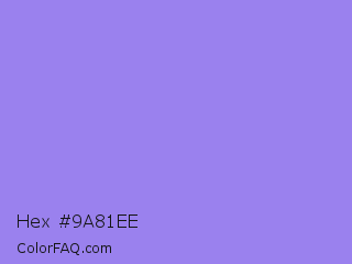 Hex #9a81ee Color is a light indigo color and the nearest color is Medium Purple #9370db. Hex code #9a81ee and RGB value is rgb(154,129,238). In RGB color space, this color is composed of 60% red, 51% green, 93% blue, In CMYK color space, this color is composed of 35% cyan, 46% magenta, 0% yellow , 7% black , In HSL color space, this color has a hue angle of 254° , 76% saturation and 72% lightness.