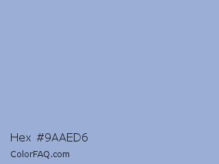 Hex #9aaed6 Color is a light blue color and the nearest color is Wild Blue Yonder #a2add0. Hex code #9aaed6 and RGB value is rgb(154,174,214). In RGB color space, this color is composed of 60% red, 68% green, 84% blue, In CMYK color space, this color is composed of 28% cyan, 19% magenta, 0% yellow , 16% black , In HSL color space, this color has a hue angle of 220° , 42% saturation and 72% lightness.