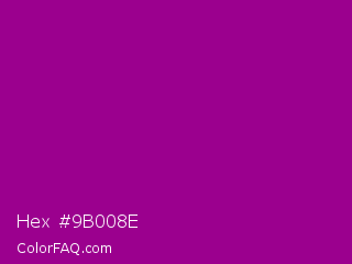 Hex #9b008e Color is a dark magenta color and the nearest color is Dark Magenta #8b008b. Hex code #9b008e and RGB value is rgb(155,0,142). In RGB color space, this color is composed of 61% red, 0% green, 56% blue, In CMYK color space, this color is composed of 0% cyan, 100% magenta, 8% yellow , 39% black , In HSL color space, this color has a hue angle of 305° , 100% saturation and 30% lightness.