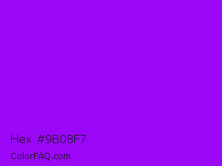 Hex #9b08f7 Color is a normal purple color and the nearest color is Vivid Violet #9f00ff. Hex code #9b08f7 and RGB value is rgb(155,8,247). In RGB color space, this color is composed of 61% red, 3% green, 97% blue, In CMYK color space, this color is composed of 37% cyan, 97% magenta, 0% yellow , 3% black , In HSL color space, this color has a hue angle of 277° , 94% saturation and 50% lightness.