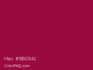 Hex #9b0941 Color is a normal rose color and the nearest color is Pink Raspberry #980036. Hex code #9b0941 and RGB value is rgb(155,9,65). In RGB color space, this color is composed of 61% red, 4% green, 25% blue, In CMYK color space, this color is composed of 0% cyan, 94% magenta, 58% yellow , 39% black , In HSL color space, this color has a hue angle of 337° , 89% saturation and 32% lightness.