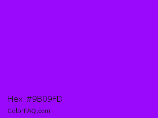 Hex #9b09fd Color is a normal purple color and the nearest color is Vivid Violet #9f00ff. Hex code #9b09fd and RGB value is rgb(155,9,253). In RGB color space, this color is composed of 61% red, 4% green, 99% blue, In CMYK color space, this color is composed of 39% cyan, 96% magenta, 0% yellow , 1% black , In HSL color space, this color has a hue angle of 276° , 98% saturation and 51% lightness.