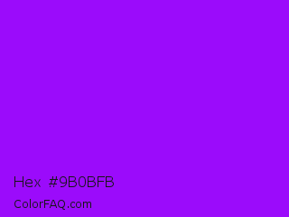 Hex #9b0bfb Color is a normal purple color and the nearest color is Vivid Violet #9f00ff. Hex code #9b0bfb and RGB value is rgb(155,11,251). In RGB color space, this color is composed of 61% red, 4% green, 98% blue, In CMYK color space, this color is composed of 38% cyan, 96% magenta, 0% yellow , 2% black , In HSL color space, this color has a hue angle of 276° , 97% saturation and 51% lightness.
