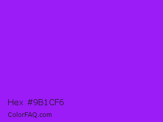 Hex #9b1cf6 Color is a normal purple color and the nearest color is Veronica #a020f0. Hex code #9b1cf6 and RGB value is rgb(155,28,246). In RGB color space, this color is composed of 61% red, 11% green, 96% blue, In CMYK color space, this color is composed of 37% cyan, 89% magenta, 0% yellow , 4% black , In HSL color space, this color has a hue angle of 275° , 92% saturation and 54% lightness.