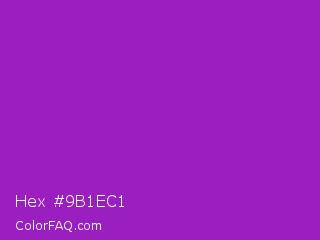 Hex #9b1ec1 Color is a normal purple color and the nearest color is Dark Orchid #9932cc. Hex code #9b1ec1 and RGB value is rgb(155,30,193). In RGB color space, this color is composed of 61% red, 12% green, 76% blue, In CMYK color space, this color is composed of 20% cyan, 84% magenta, 0% yellow , 24% black , In HSL color space, this color has a hue angle of 286° , 73% saturation and 44% lightness.