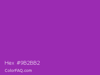 Hex #9b2bb2 Color is a normal purple color and the nearest color is Dark Orchid #9932cc. Hex code #9b2bb2 and RGB value is rgb(155,43,178). In RGB color space, this color is composed of 61% red, 17% green, 70% blue, In CMYK color space, this color is composed of 13% cyan, 76% magenta, 0% yellow , 30% black , In HSL color space, this color has a hue angle of 290° , 61% saturation and 43% lightness.