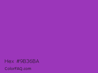 Hex #9b36ba Color is a normal purple color and the nearest color is Dark Orchid #9932cc. Hex code #9b36ba and RGB value is rgb(155,54,186). In RGB color space, this color is composed of 61% red, 21% green, 73% blue, In CMYK color space, this color is composed of 17% cyan, 71% magenta, 0% yellow , 27% black , In HSL color space, this color has a hue angle of 286° , 55% saturation and 47% lightness.