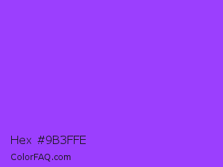 Hex #9b3ffe Color is a light violet color and the nearest color is Navy Purple #9457eb. Hex code #9b3ffe and RGB value is rgb(155,63,254). In RGB color space, this color is composed of 61% red, 25% green, 100% blue, In CMYK color space, this color is composed of 39% cyan, 75% magenta, 0% yellow , 0% black , In HSL color space, this color has a hue angle of 269° , 99% saturation and 62% lightness.