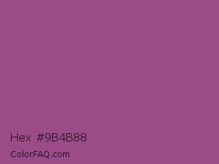 Hex #9b4b88 Color is a normal magenta color and the nearest color is Razzmic Berry #8d4e85. Hex code #9b4b88 and RGB value is rgb(155,75,136). In RGB color space, this color is composed of 61% red, 29% green, 53% blue, In CMYK color space, this color is composed of 0% cyan, 52% magenta, 12% yellow , 39% black , In HSL color space, this color has a hue angle of 314° , 35% saturation and 45% lightness.