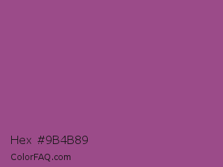 Hex #9b4b89 Color is a normal magenta color and the nearest color is Razzmic Berry #8d4e85. Hex code #9b4b89 and RGB value is rgb(155,75,137). In RGB color space, this color is composed of 61% red, 29% green, 54% blue, In CMYK color space, this color is composed of 0% cyan, 52% magenta, 12% yellow , 39% black , In HSL color space, this color has a hue angle of 314° , 35% saturation and 45% lightness.