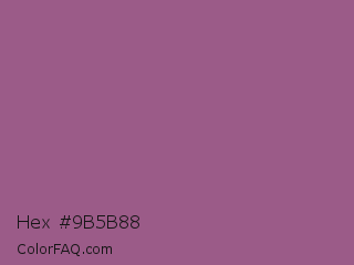 Hex #9b5b88 Color is a normal magenta color and the nearest color is Strikemaster #956387. Hex code #9b5b88 and RGB value is rgb(155,91,136). In RGB color space, this color is composed of 61% red, 36% green, 53% blue, In CMYK color space, this color is composed of 0% cyan, 41% magenta, 12% yellow , 39% black , In HSL color space, this color has a hue angle of 318° , 26% saturation and 48% lightness.